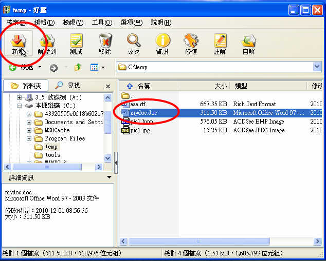 要做基本的壓縮也很簡單,選好要壓的檔案,按下新增